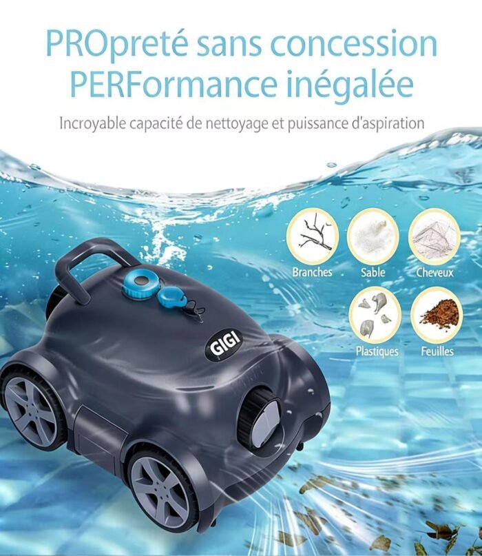 The GIGI robotic pool cleaner is the ideal solution for keeping your pool effortlessly clean. Completely cordless, it operates autonomously and efficiently vacuums up all types of debris found at the bottom of the pool.